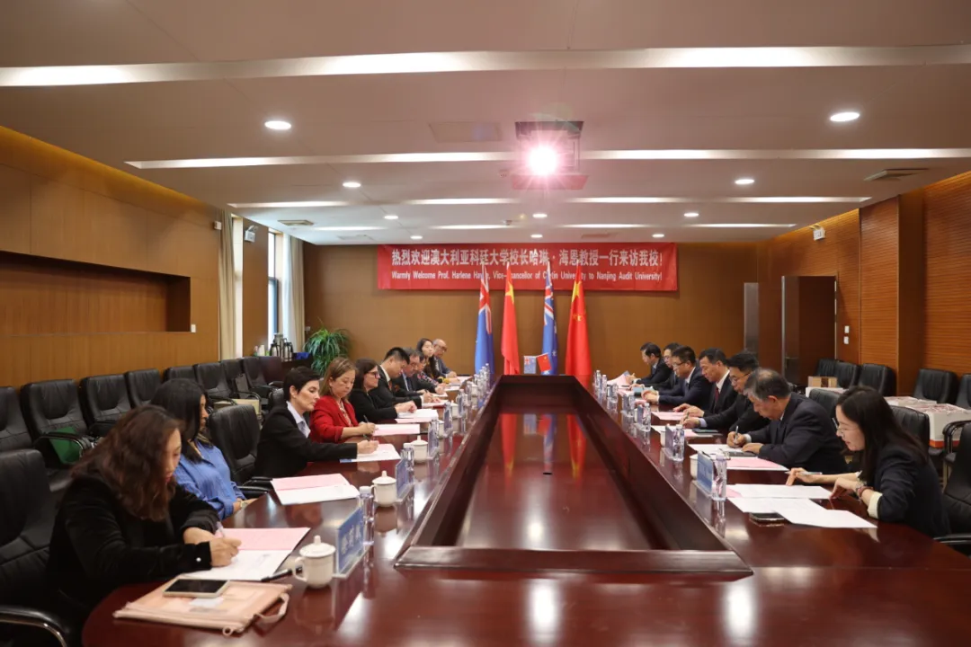 4月22日,南京审计大学中澳国际化教育高质量发展论坛暨中澳合作项目校友联谊会成立大会举行,澳大利亚科廷大学校长哈琳·海恩、副校长张啸天、副校长张雪影一行到访我校。当天下午,校长董必荣会见来宾,副校长李乾文,党委宣传部、会计学院、教务处、国际合作与交流办公室等相关部门负责人参加会谈,会议由李乾文主持。