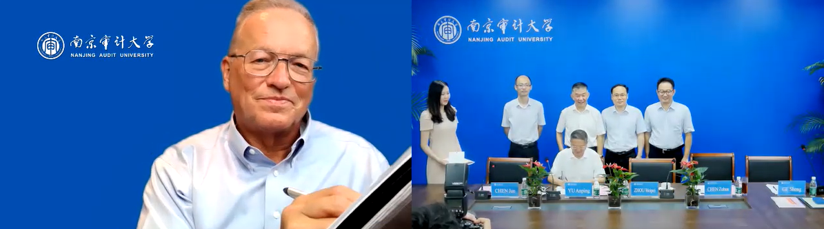 随后,俞安平与理查德·钱伯斯通过视频形式同步签署南京审计大学海外荣誉院长聘用协议。