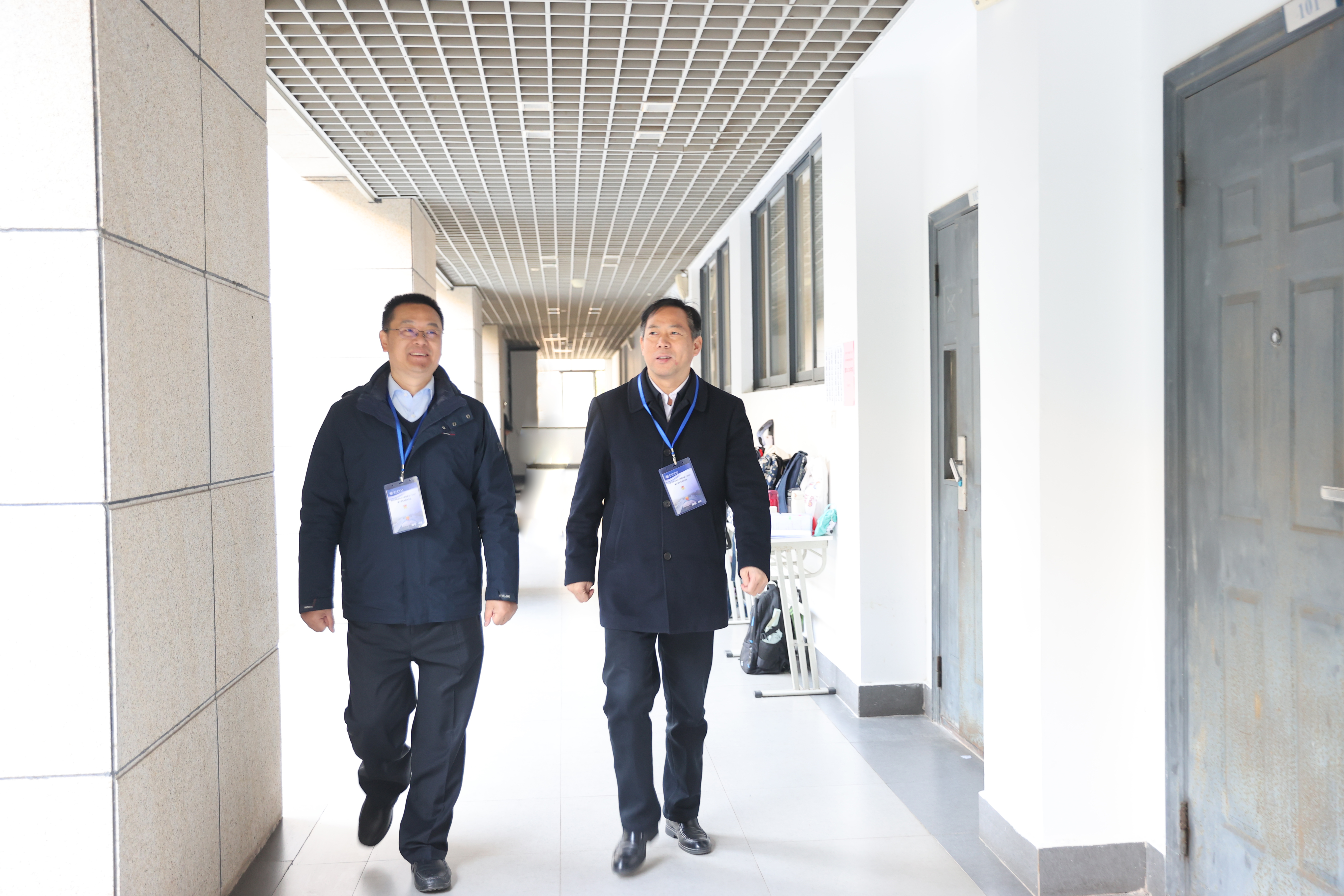 校党委书记董必荣,校党委副书记、校长陆华良带队深入考场及考务办,检查考场情况,重点关注考务组织等工作,详细了解考试安排、考生服务保障等工作落实情况,并要求继续统筹做好考点及周边道路疏导、治安秩序、饮食安全等方面工作,齐心协力为考生营造安全舒心的考试环境。