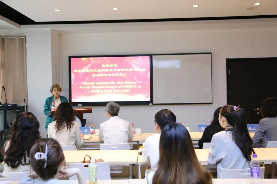 伊琳娜·博科娃充分肯定了南审国际化战略与在联合国审计工作中的专业贡献。她指出,当前联合国正面临复杂挑战,审计工作在联合国中的地位日益提升,希望加强与南审国际审计专家团队的沟通合作,共同为全球治理贡献智慧,并鼓励学生参与联合国实习,让更多青年人才在国际舞台施展才华。