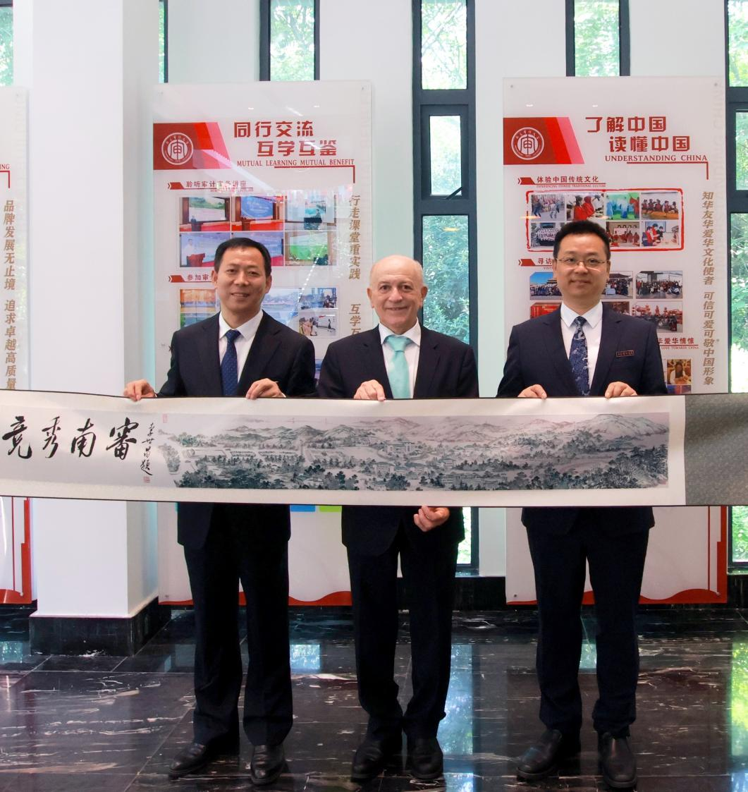 随后,赛德拉斯先生参观了留学生院,听取了学校国际化办学的最新成果。他对南审在培养国际化审计人才方面的持续探索与实践表示高度赞赏,并欣然提笔,题写寄语赠予我校师生。他在寄语中提到:“我怀着无比喜悦之情再次到访南京审计大学。在数字化浪潮席卷全球的今天,希望与南京审计大学深化双边合作,共同探索信息技术与人工智能在提升公共治理效能、优化政策决策中的创新应用。作为南京审计大学荣誉教授深感荣幸,作为南京审计大学的忠实合作伙伴,将继续致力于深化两国学术交流,促进知识共享与文明互鉴。”