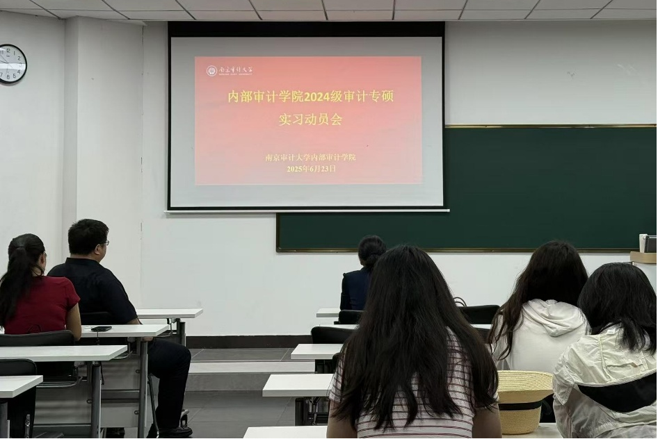 6月23日上午,内部审计学院2024级研究生实习动员大会在致明楼一楼报告厅举行。内部审计学院书记李海燕、院长许汉友、副院长廖林、2023级内审专硕研究生钱沐雪和2024级全体内审专硕研究生参加动员会,会议由廖林主持。