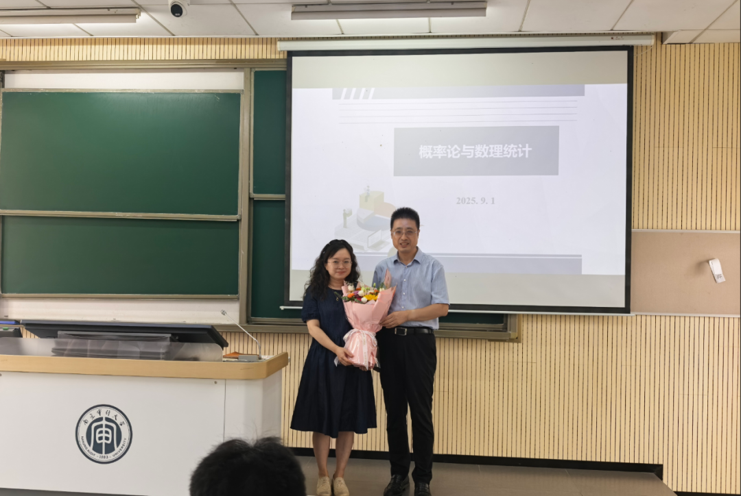 党委常委、副校长李乾文为数学学院老师苏小囡赠送鲜花
