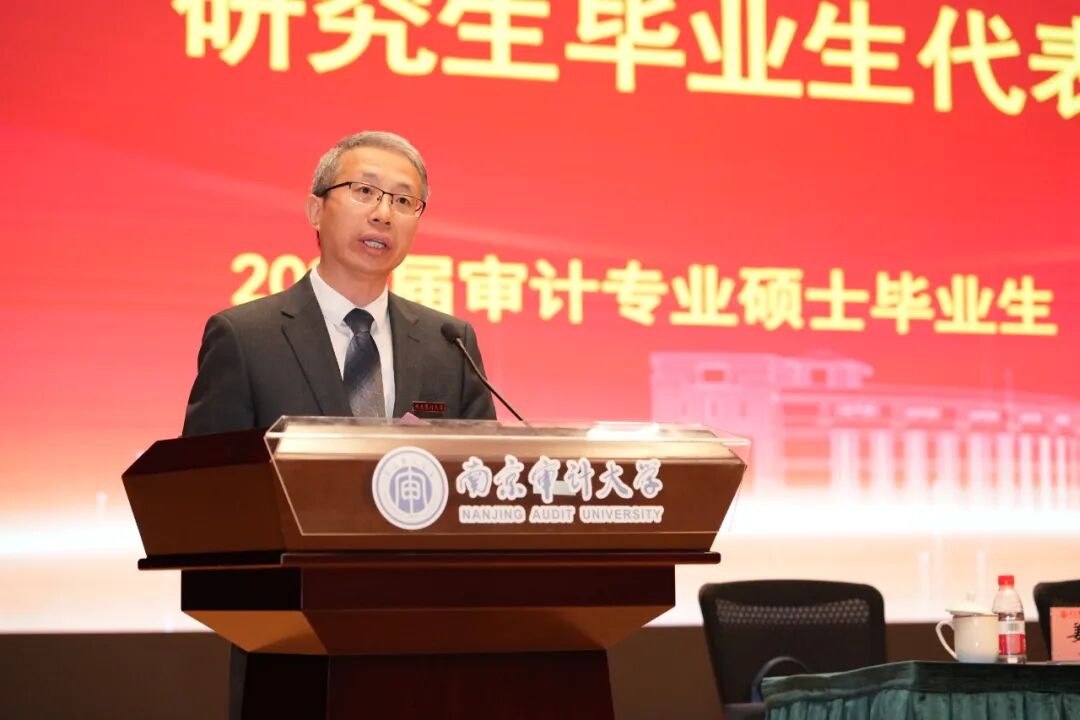 他指出,2023年7月,习近平总书记给我校审计专业硕士国际班的留学生回信。这封回信不仅是对国际班学生的勉励,更是对全体南审学子的殷切期望。审计的独特作用在于,通过对地方政府债务、金融等重点领域的监督,及时预警和化解系统性风险,为国家发展筑牢防线。他希望大家今后无论身处哪个领域,培养好监督思维、风险意识、合规素养、责任担当,都将是大家职业生涯中不可或缺的核心竞争力,也是大家为服务国家经济监督贡献力量的独特方式。