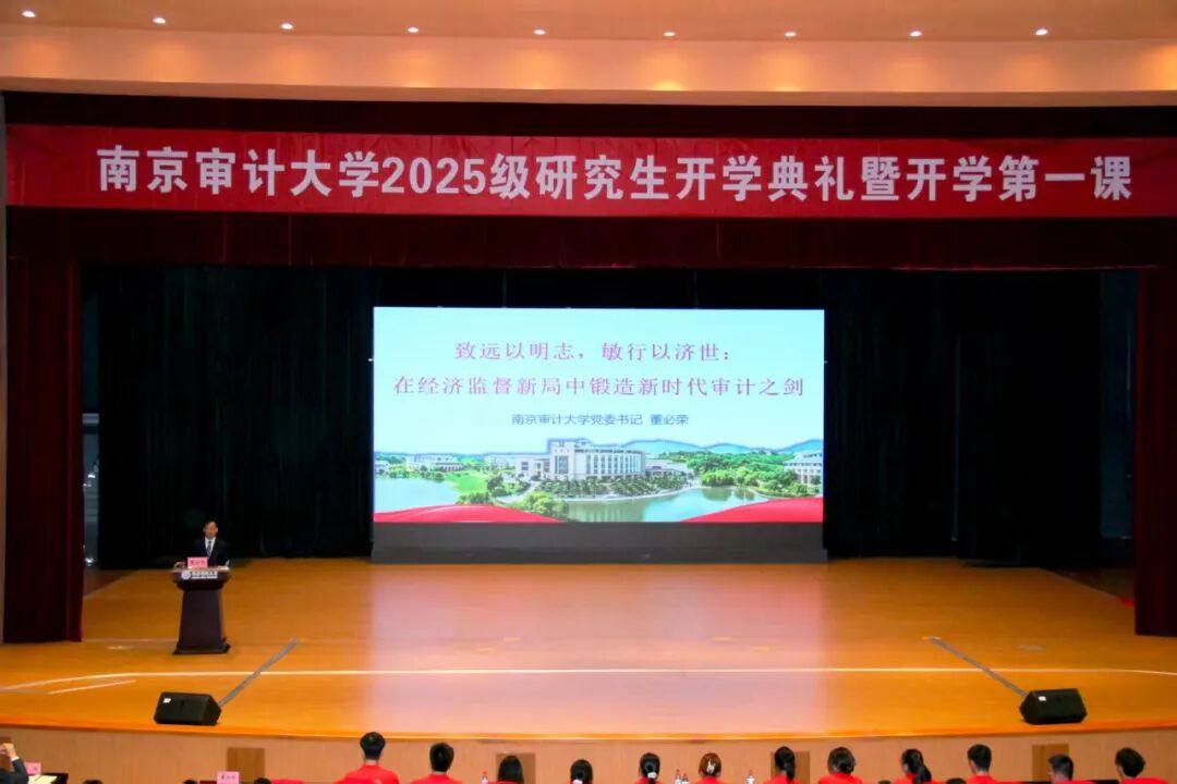 9月12日下午,2025级研究生开学典礼暨开学第一课在审计署党校、审计署审计干部教育学院学术报告厅举行。校党委书记董必荣、校长陆华良等全体校领导出席会议,各学院书记、院长,相关部门负责人,研究生导师代表,全体研究生新生辅导员,全体2025级研究生新生参加活动。