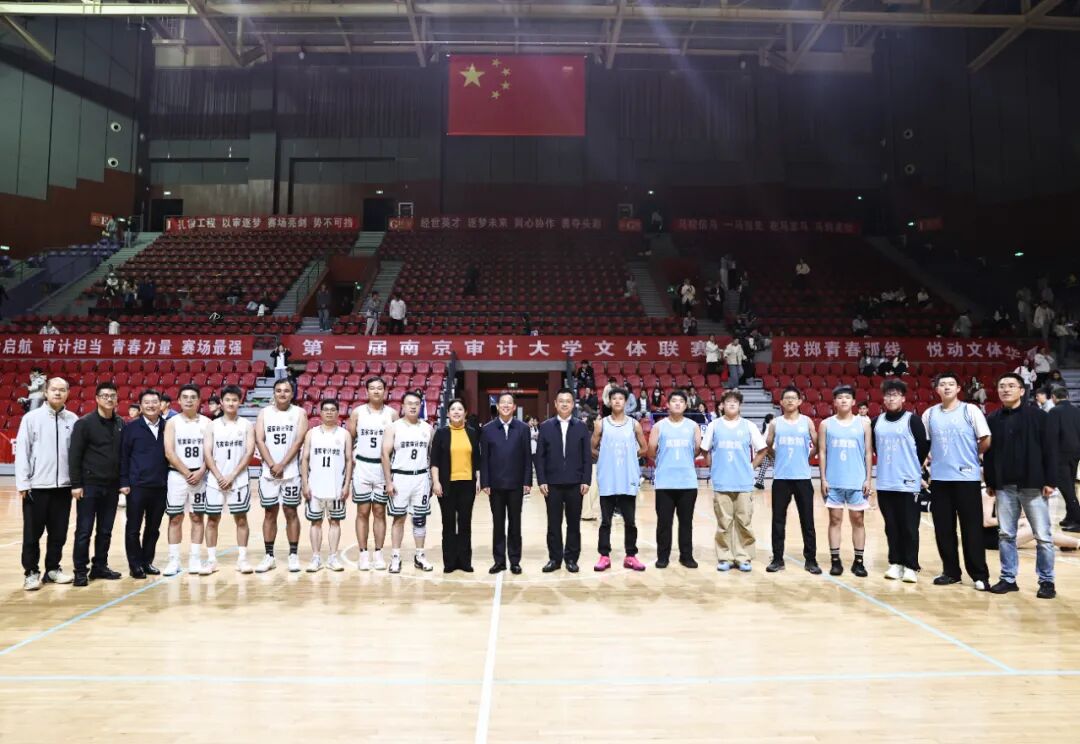 10月18日下午,第一届南京审计大学文体联赛在浦口校区新体主馆开幕。曾任中国国家女子篮球队主教练、中国篮球协会教练委员会常委、南京军区原体工队副大队长兼篮球总教练马跃南指导,江苏省体育局篮球运动管理中心副主任吴九桂,江苏省篮球协会裁判委员会副主任,南京市篮球运动协会裁判委员会主任杜积明,校党委书记董必荣,党委副书记、校长陆华良,省纪委监委派驻南京审计大学纪检监察组组长、党委常委、纪委书记赵立法 ,校党委常委、副校长周方舒、李乾文 ,1991级校友,工程审计学院校友联谊会会长张海军出席,师生、校友代表参加活动。