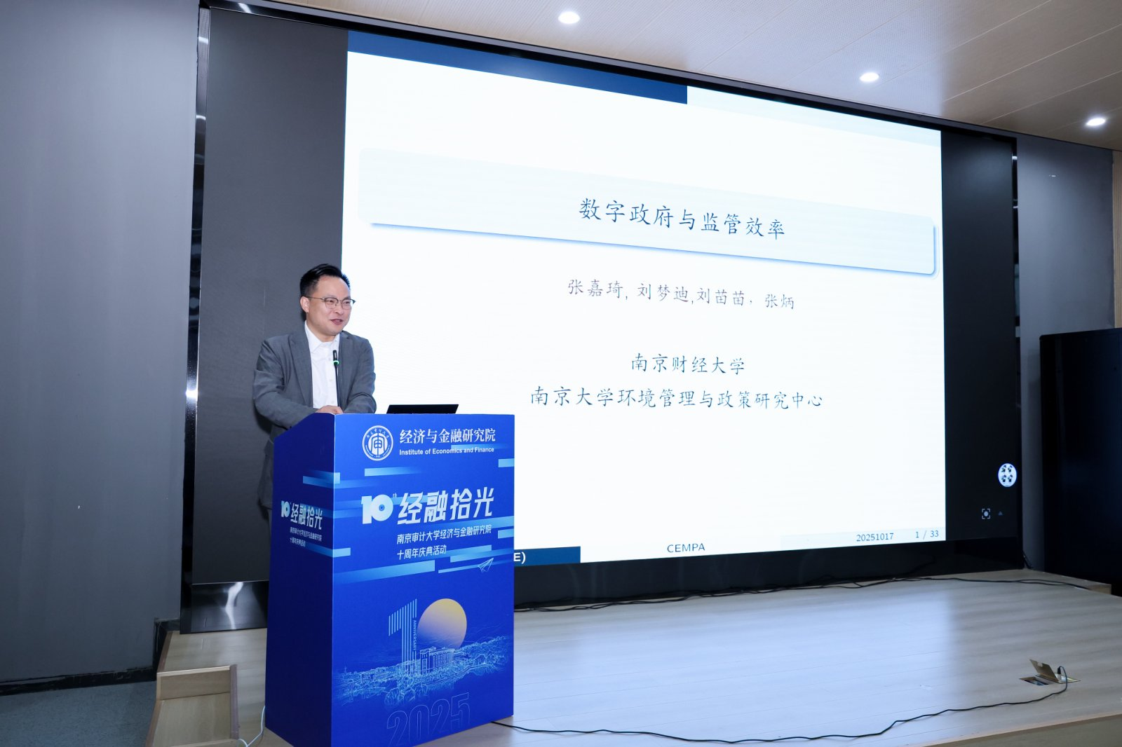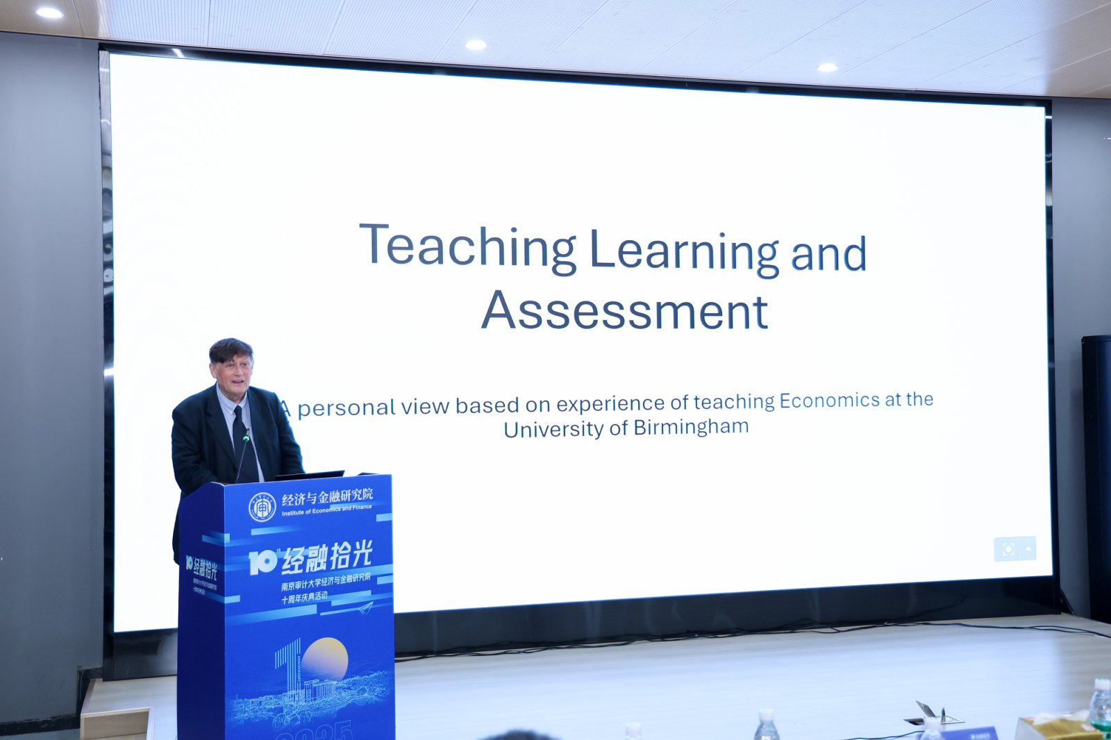 10月18日,我校经济与金融研究院以“数字经济与金融创新”为主题,在莫愁校区举办建院十周年学术论坛暨校友返校系列活动。江苏省教育厅二级调研员庾卫东,南京财经大学副校长张炳,南京大学商学院院长安同良,伯明翰大学商学院前院长David Dickinson,英国女王大学中国办公室副主任魏勇翔,西澳大学指定项目办事处负责人钱孟秋,我校党委副书记、校长陆华良,党委常委、副校长卢亚娟出席,相关职能部门和二级学院领导,研究院全体教师、退休教师、在校学生、校友代表,以及兄弟高校教师代表共同参加了本次活动。活动通过主旨演讲、平行论坛、圆桌对话、校友交流等环节,系统总结十年发展经验,共商数字经济时代金融创新路径。活动由经济与金融研究院院长孙杨主持。