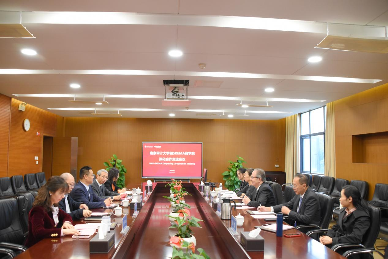 陆华良回顾两校五年合作成果。他指出,自2020年国际联合审计学院首次招生以来,双方在办学理念、课程建设与师资交流等方面取得了显著成效。他强调,今年国际联合审计学院本科生扩招至420人,硕士研究生规模达112人,合作进入规模与质量并重的新阶段。南京审计大学愿与SKEMA商学院持续拓宽合作领域、深化合作内涵,共同打造中法高等教育合作的典范,为审计事业的国际化发展作出新的贡献。