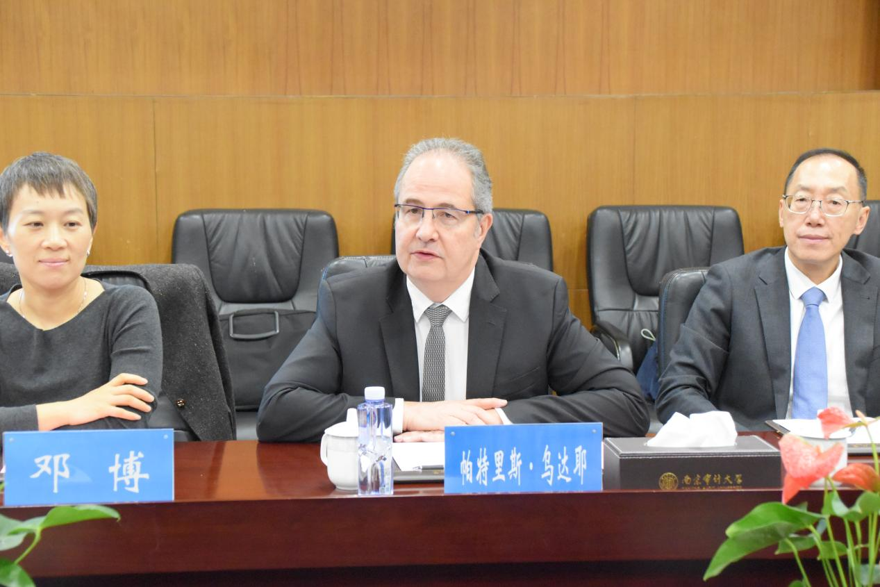 帕特里斯·乌达耶一行来访期间,与国际学院领导班子进行座谈。国际学院副院长(主持)张文秀介绍了学院在学生培养方面的整体情况:学院本科生与研究生招生规模稳步扩大,专业方向日趋多元;毕业生发展路径多样,展现出高质量的升学和就业前景;交换生管理机制持续优化。双方围绕本科生与研究生培养、法国交换生管理、课程共建及合作深化等议题进行了深入交流。