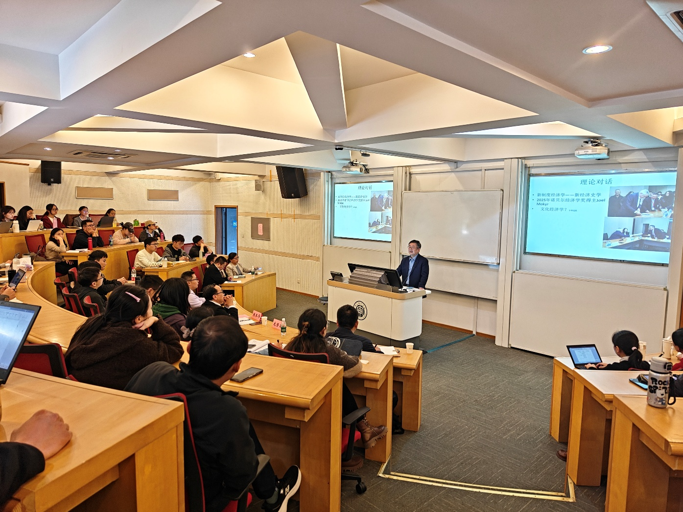 10月27日下午,经济学院邀请清华大学华商研究中心主任龙登高教授作“公共品供给主体的中西比较与理论启示”专题讲座,经济学院教师和研究生代表参加讲座。讲座由校党委常委、副校长陈冬华主持。