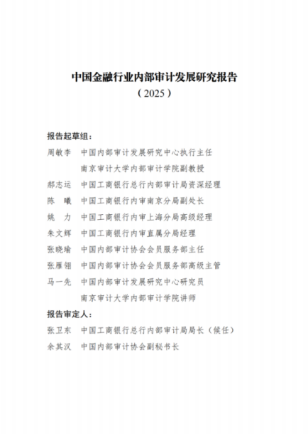 为了解金融机构内部审计发展现状,总结和推广工作经验,中国内部审计协会依托中国工商银行内部审计局、中内协内部审计学院、中内协中国内部审计发展研究中心于2025年4月至12月开展专项调研。通过对调研数据的整理与分析,研究团队结合当前金融形势,撰写了《中国金融行业内部审计发展研究报告(2025)》。