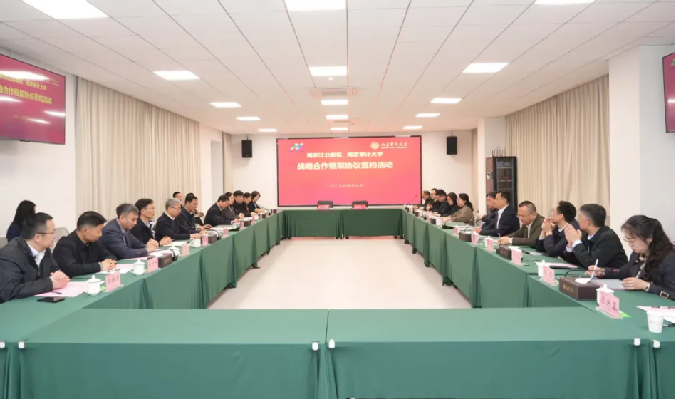 4月9日,南京江北新区与南京审计大学举行校地全面战略合作框架协议签约活动。江北新区党工委书记、浦口区委书记陆卫东,江北新区党工委委员、管委会副主任王伟,我校党委书记董必荣,党委副书记陈中建,党委常委、副校长姜海出席活动。
