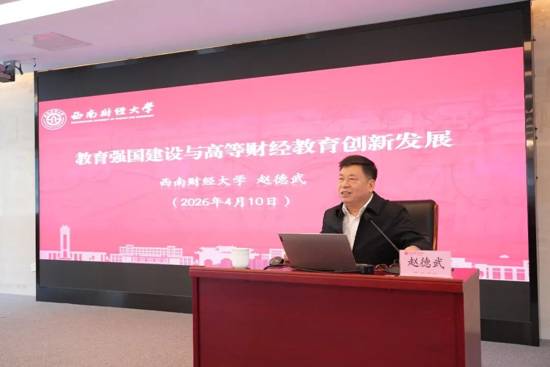 西南财经大学原党委书记赵德武教授作题为《教育强国建设与高等财经高校创新发展》专题辅导报告。报告紧扣时代发展大势、教育强国战略与学校发展实际,围绕所处时代方位、“新财经”战略内涵、教育强国自强卓越观、“十五五”时期“新财经”建设着力点四个核心维度,紧密结合我校树立和践行正确政绩观学习教育与 “十五五” 规划编制工作,为学校锚定发展方向、破解改革难题、提升办学质效提出精准务实的指导意见。