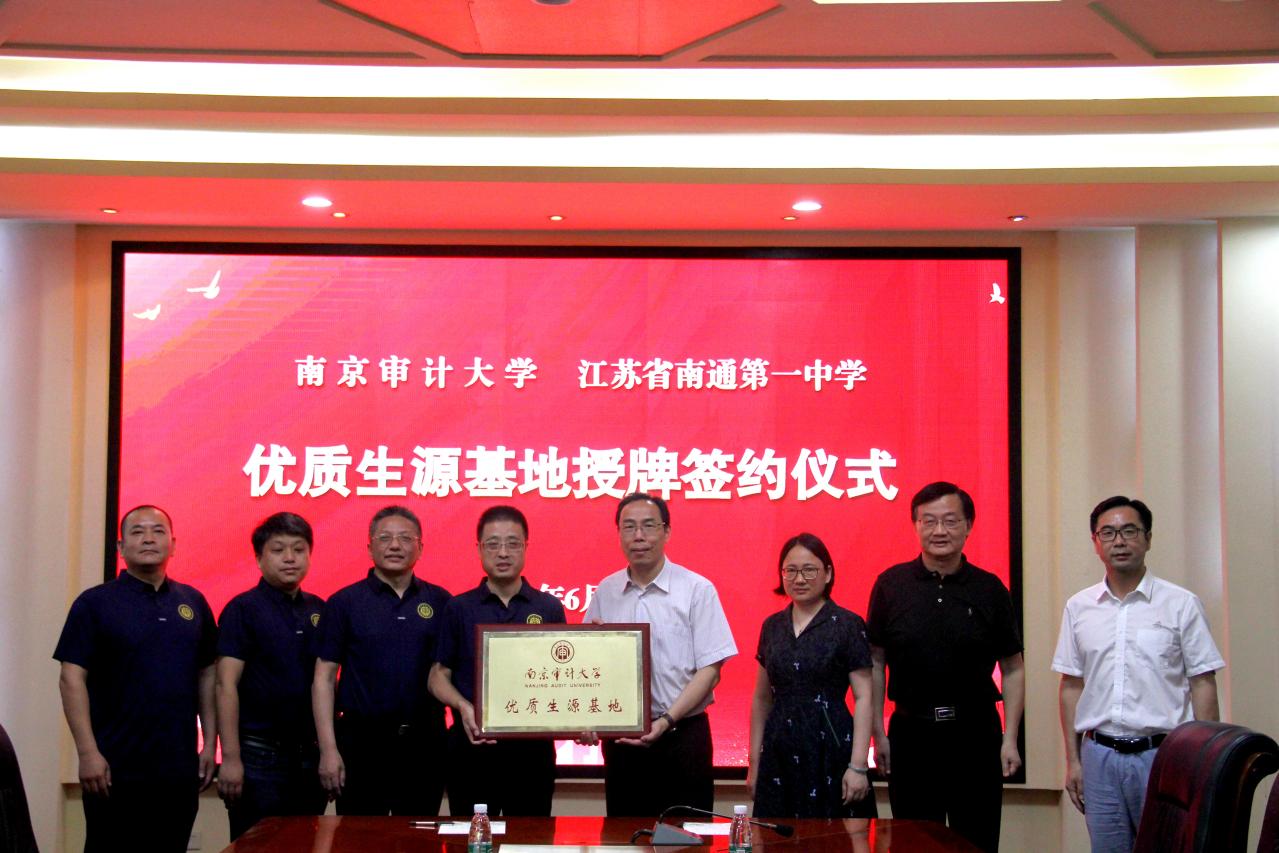 6月27日上午,我校赴江苏省南通第一中学举办“南京审计大学优质生源基地”签约授牌仪式。南通第一中学校长张晓冰,党委书记范永梅,副校长罗飞、刘建国,我校党委常委、组织部部长李乾文,信息工程学院党委书记张勇,校友工作办公室副主任张林林等出席签约授牌仪式。