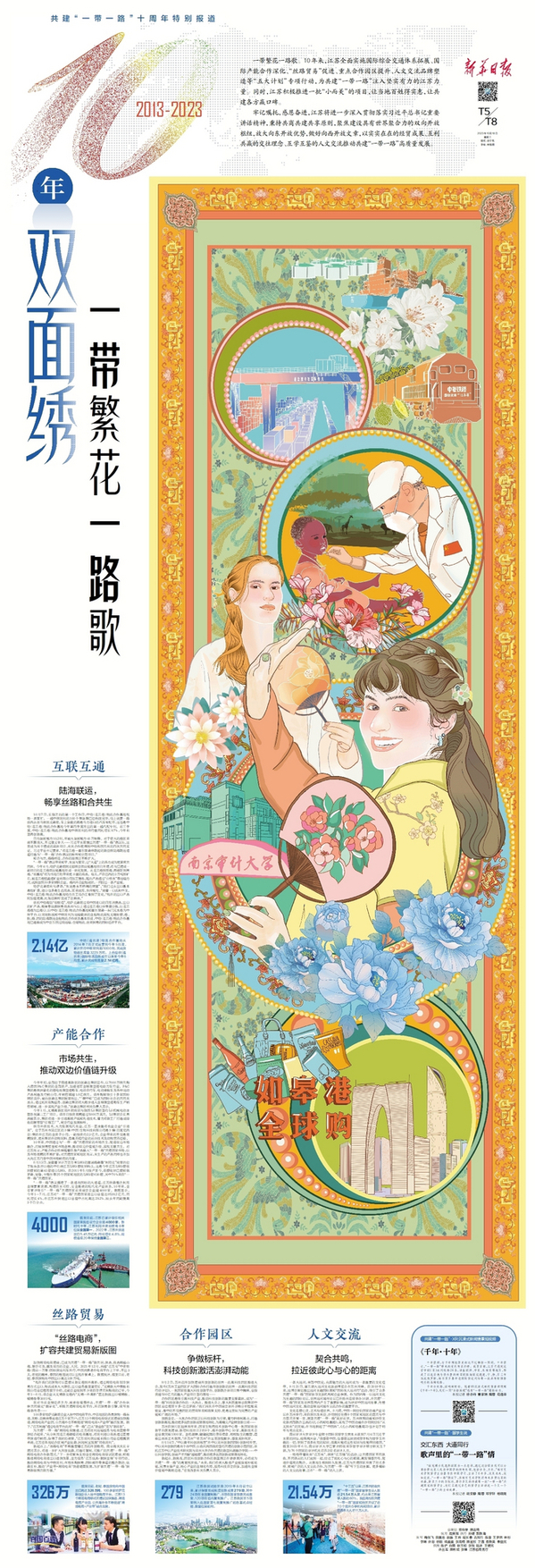 一带繁花一路歌。10年来,江苏全面实施国际综合交通体系拓展、国际产能合作深化、“丝路贸易”促进、重点合作园区提升、人文交流品牌塑造等“五大计划”专项行动,为共建“一带一路”注入坚实有力的江苏力量。同时,江苏积极推进一批“小而美”的项目,让当地百姓得实惠,让共建各方赢口碑。