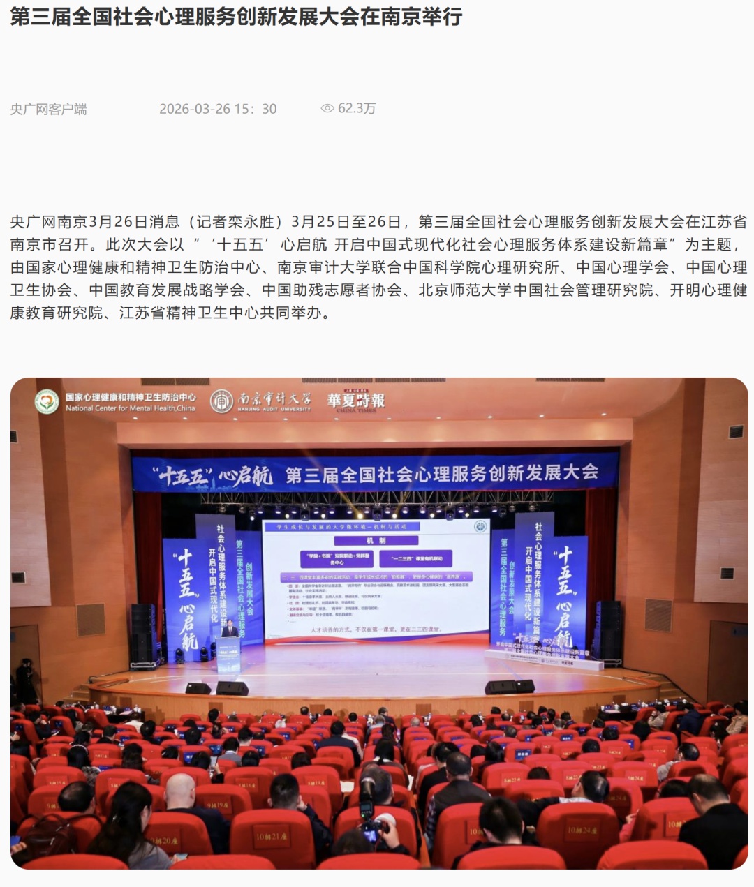 此次大会受到央视新闻、光明网、新华网、央广网、华夏时报、中国网、中国青年报、中国科技网、中国妇女报、中国经营网、荔枝新闻、澎湃新闻、紫金山新闻、大众网、海报新闻、公益时报等多家主流媒体报道。