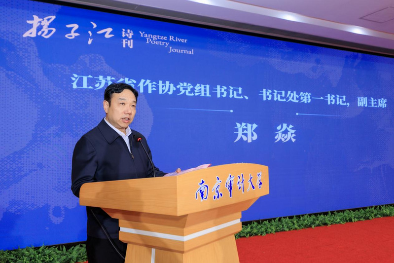 郑焱在讲话中代表省作协向所有获奖者表示祝贺。他指出,江苏文脉悠长,始终孕育着生生不息的文学力量。《扬子江诗刊》创办二十余载,见证了当代汉语诗歌的发展轨迹,紫金・江苏期刊优秀作品奖和扬子江诗学奖历经十余年积淀,已成为中国诗坛具有重要影响力的奖项。同时,他肯定南审在校园文化建设和文学人才培育上的成效,鼓励青年学生追逐文学梦想,并表示省作协将持续搭建创作交流平台,希望文学同仁传承江苏文脉、勇担使命,推动当代中国诗歌事业持续向前发展。