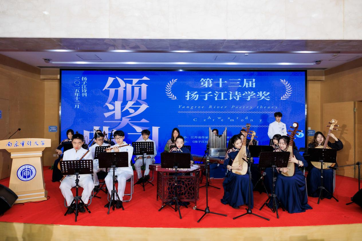 12月8日晚,第六届紫金·江苏文学期刊优秀作品奖《扬子江诗刊》奖、第十三届扬子江诗学奖颁奖仪式在我校举行。中国作家协会诗歌委员会主任、中国作协原副主席吉狄马加,江苏省作协党组书记、书记处第一书记、副主席郑焱,省作协党组成员、书记处书记、副主席,《钟山》杂志主编贾梦玮,省作协副主席,江苏文艺评论家协会名誉主席,中国作协文学理论批评委员会副主任汪政,省作协副主席、《扬子江诗刊》主编、鲁迅文学奖得主胡弦;南京审计大学党委书记董必荣,党委常委、副校长周方舒,党委宣传部、团委、国际学院、文学院、图书馆等有关部门负责人,以及获奖代表、特邀嘉宾出席仪式。
