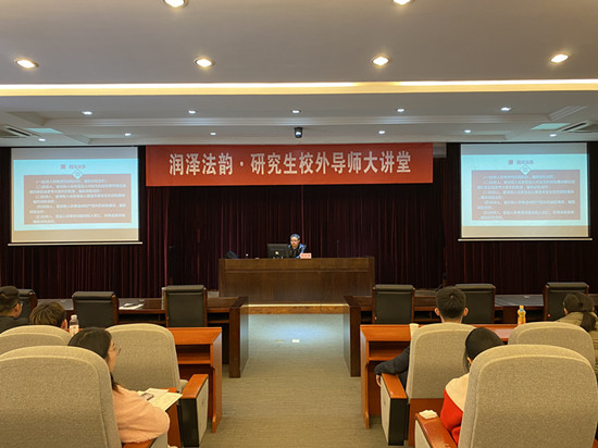 3月24日下午2点,我校法学院“润泽法韵·研究生校外导师大讲堂”第3期邀请到了法学院研究生校外导师郇习顶博士,作《浅谈几种常见刑事案件的认定思路和裁判要旨》专题讲座,郇习顶博士是江苏省高级人民法院原高级法官,现离退休法官协会常务理事,具有醇厚的学术功底和丰富的实践经验。本次讲座在教学法庭举办,由法学院王刚副教授主持,法学院百余名师生参加了本次讲座。