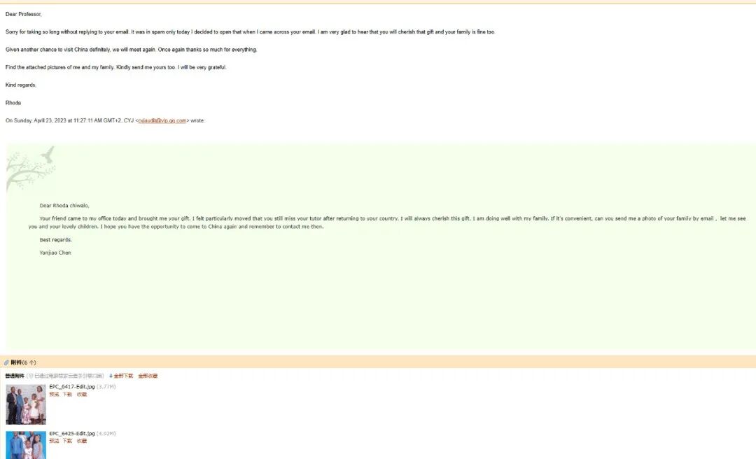 近年来,作为导师陈艳娇先后指导了9名留学研究生,关心他们的生活和学习,他们顺利毕业取得硕士学位并回到自己的祖国从事审计工作,留学生们表示难以忘记在中国的学习、生活经历。还有留学生在毕业回国后,给陈艳娇发来感谢信。