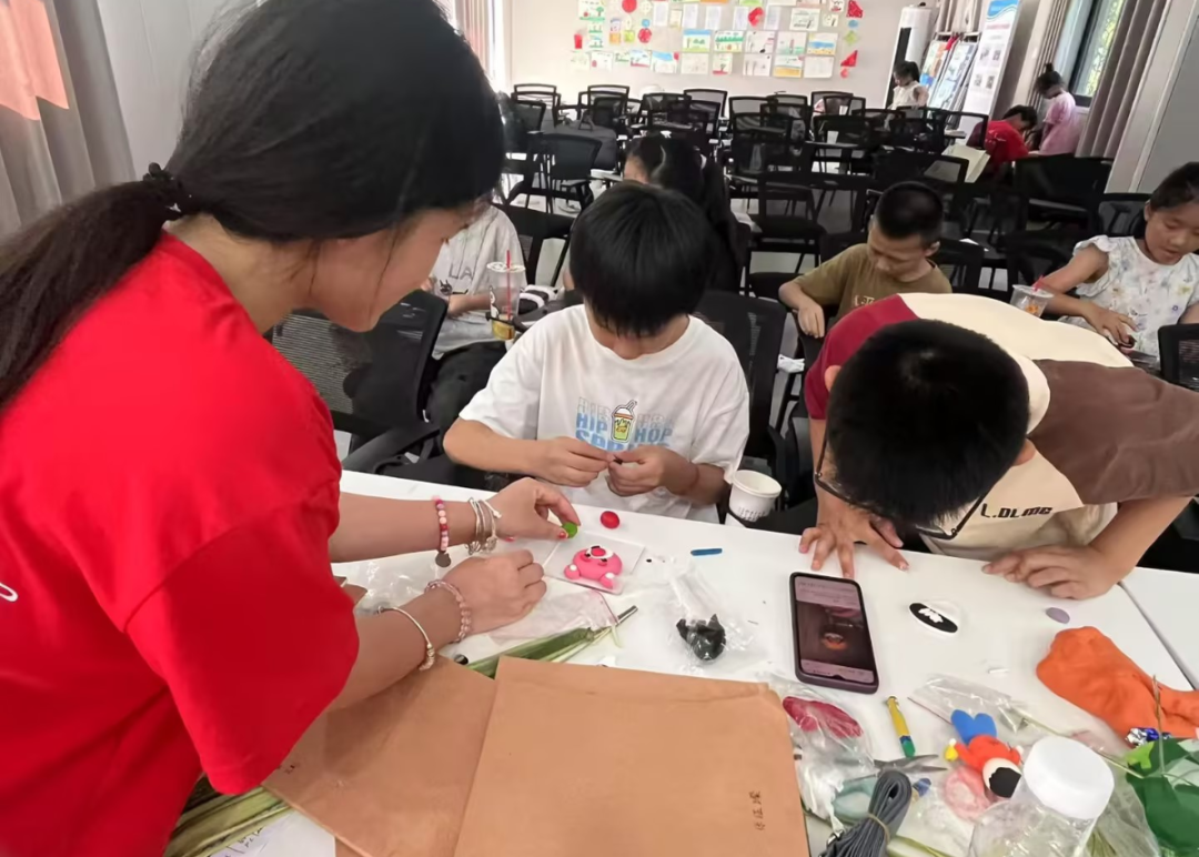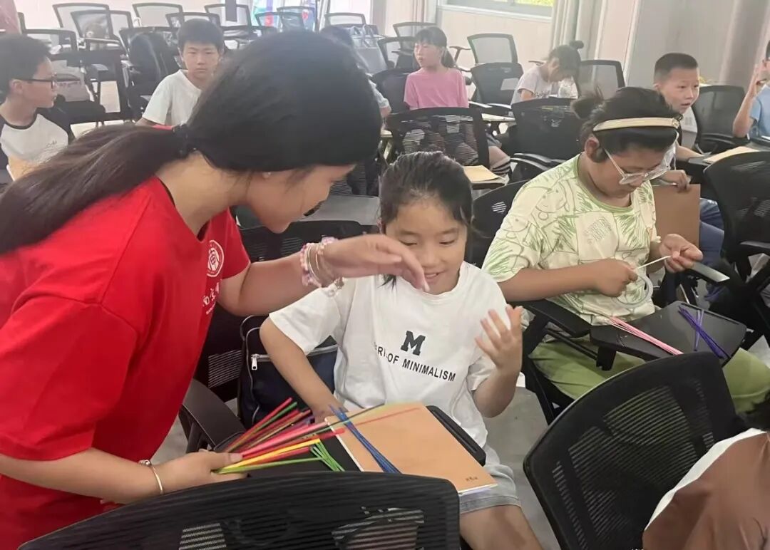 我们在滨海港镇文明实践所进行了为期两周的社会实践。每天,我会给20多个孩子上5小时课,包括特色课程,比如带他们编非遗竹篮、剪生肖窗花,还穿插课外辅导和游戏,帮他们解答作业难题。